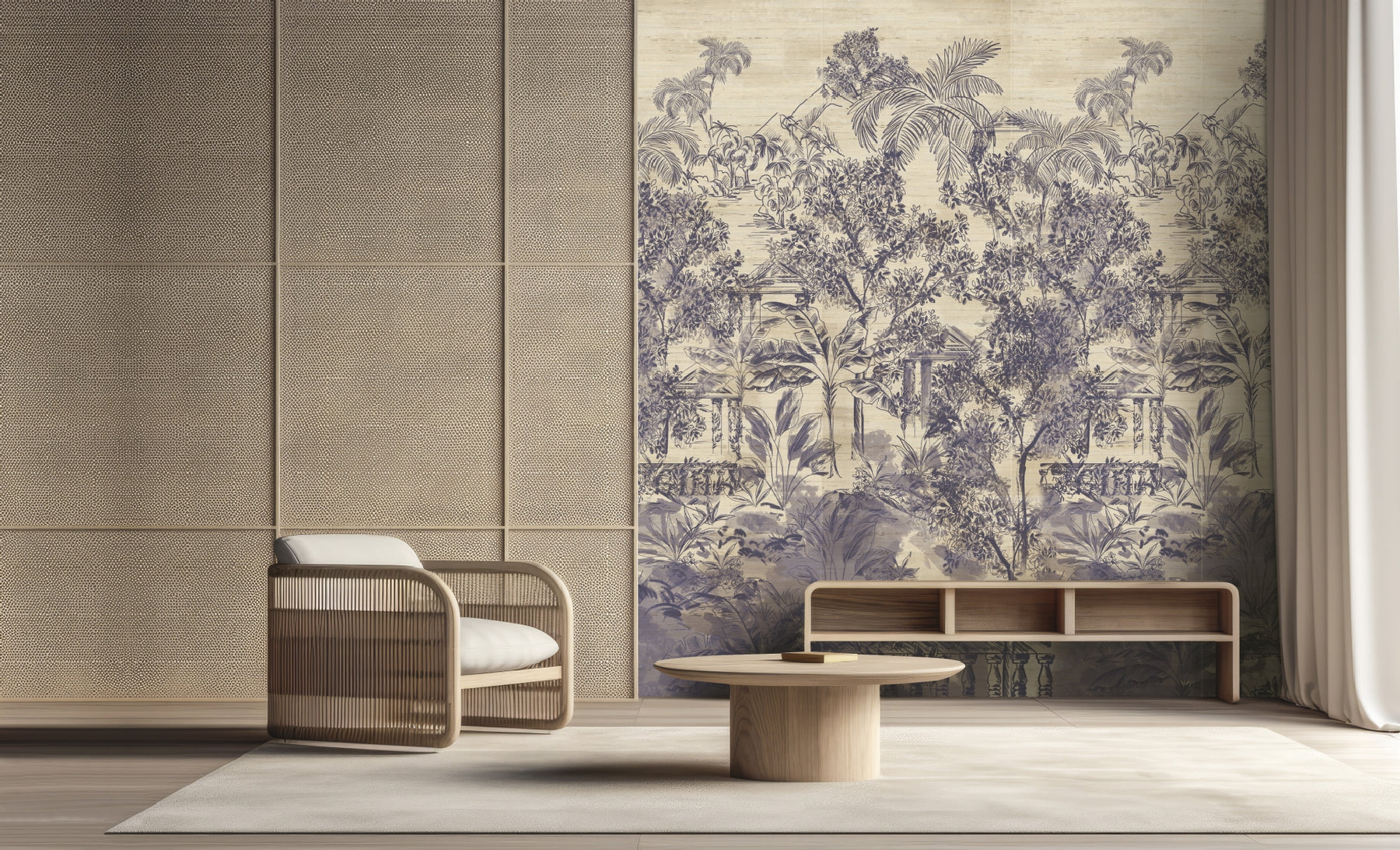 El mural Japan de la colección Voyage evoca la esencia del país del sol naciente. Inspirado en templos, kimonos y paisajes nipones, fusiona tradición y modernidad para un impacto visual sofisticado.